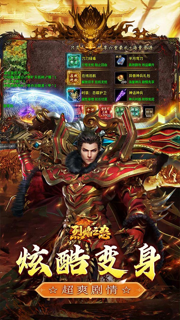 2.自动回收、范围拾取、神器法宝上线即送!更有海量道具货币相赠!